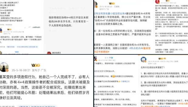 “我拒绝相信200多名4+4项目学生中,只有董袭莹一人资料造假。”一位知名博主在社交平台发文表示,“当你在房间看到一只蟑螂,意味着背后可能藏着上千只,那么我们看到一个‘董小姐’,是否也意味着问题只是冰山一角?”