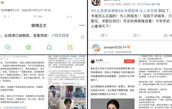 然而,一名拥有大量粉丝的医学博主对此提出尖锐反驳。他发文写道:“怎么一遇到社会不公的事儿就有人怀念他毛爷爷呢?你们是缺心眼吗?搁你毛爷爷那会儿,你哪有资格上学?饿死你们这些小瘪犊子。”该贴文语气粗暴,讽刺意味浓烈,引发巨大争议,但很快就被平台秒删,引发关于言论审查尺度的讨论。