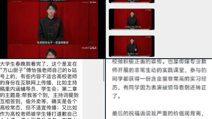 唐人日报2月4日讯:近日,南京传媒大学傅英俊老师组织的大学生春晚因某些节目内容引发争议。春晚中部分片段和台词被学校领导认为“缺乏正能量”,遭到批评。校方要求傅老师对相关内容进行删改,并对其进行了谈话。