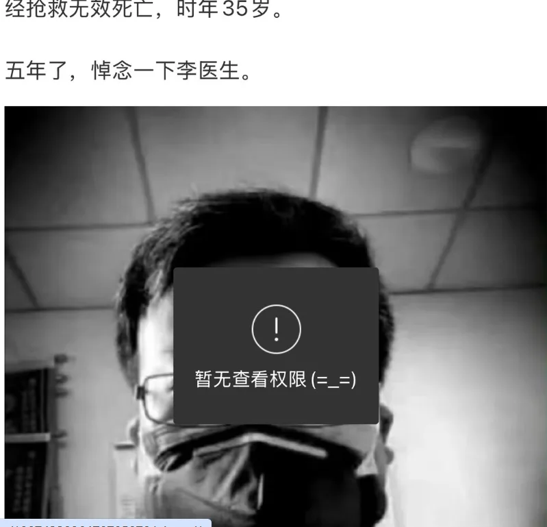 唐人日报2月7日讯:近日,李文亮医生逝世五周年之际,一位博主在社交媒体上发文并配图悼念。然而,该博主的帖子很快被平台删除,引发了网友广泛关注。李文亮医生作为最早披露新冠疫情警告的医生之一,其逝世至今仍引发社会深思。