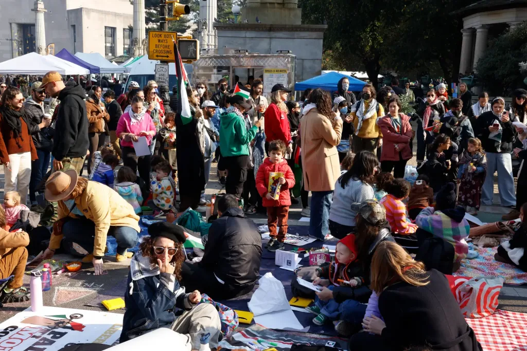 唐人日报11月11日讯:周六,约60名反以色列抗议者带着20多名儿童在纽约布鲁克林参议员查克·舒默的住所外集会,展开了一场名为“愤怒玩耍”的抗议活动。