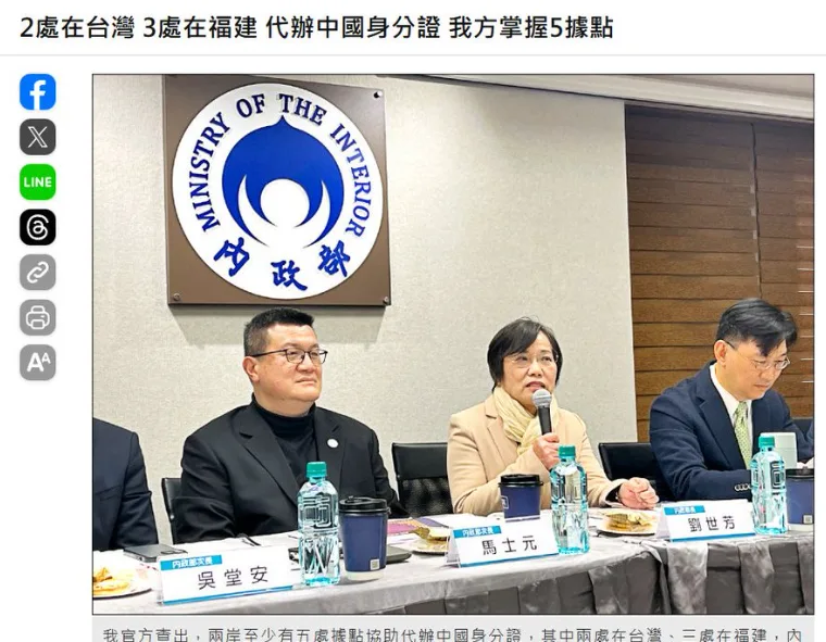 唐人日报3月7日讯:台湾《自由时报》近日引述官方消息报道,目前两岸共有五个据点涉嫌协助代办中国身份证,其中两处设在台湾,另外三处则分布在福建省的厦门、泉州及漳州。此事引发了台湾内政部的高度关注,内政部长刘世芳表示,相关部门正在积极调查这些活动是否违反了《两岸人民关系条例》。