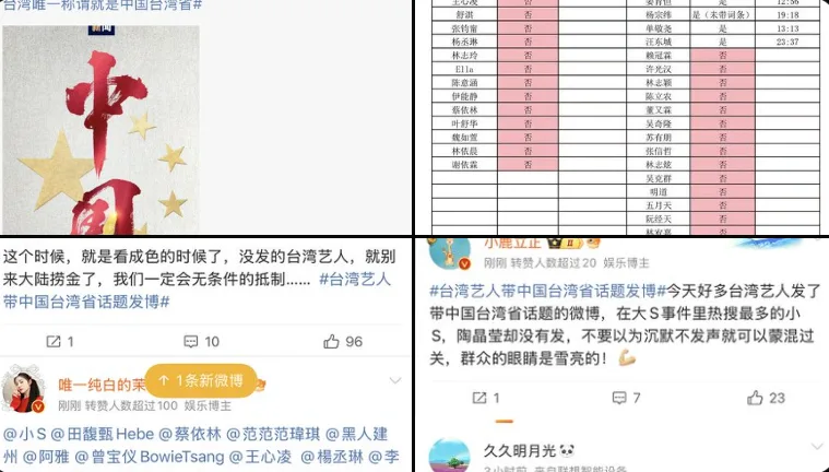 与此同时,一名博主制作并发布了一份截至3月7日,尚未公开转发或表态的台湾艺人名单。这份名单迅速在社交平台上传播,引起了网友的广泛关注。名单上的艺人因未表态被一些网民点名批评,认为他们对于此事的沉默表明了态度的暧昧。