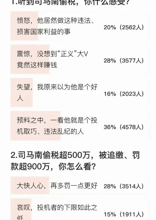 司马南因其独特的言论风格和对时事的激烈评论而广受关注,但他近年来因涉及多个争议性话题而受到质疑。此次偷税事件进一步加剧了公众对其个人行为的负面看法。调查结果显示,虽然有不少网友认为这一处罚是对司马南的公正回应,但也有部分人对他曾经的言论和行为表示强烈不满,认为他有意借舆论影响进行不正当谋利。