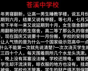 唐人日报10月11日讯:四川省广元市苍溪中学校被曝学生宿舍翻修迟迟未完工,导致数百名男生被迫在教学楼“蜗居”长达半年。学生在走廊打地铺、厕所挤洗漱、酷暑无空调、夜晚蚊虫乱飞的画面,在网络上引发轩然大波。网友愤怒质问:“这还是学校吗?坐牢都比这舒服!”