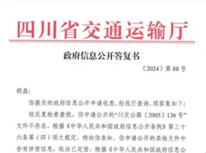 唐人日报7月14日讯:近日,一则关于四川高速公路收费延期的信息公开申请引发广泛关注。2024年11月29日,一位律师依法向四川省交通运输厅提交申请,要求公开相关高速公路延期收费的行政依据与理由。然而,交通厅的答复令人震惊:该信息“涉及国家秘密”,予以拒绝公开。