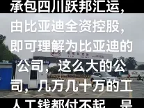 同日,安徽阜阳市阜南县张寨路8号,比亚迪阜南迪公司项目工人反映,其全资子公司“四川邦跃汇运”拖欠农民工数十万元工程款,迟迟不予支付。农民工们愤怒指出,他们辛苦数月劳作,却至今颗粒无收。项目承建方与资金方互相推诿,导致工人权益被一再侵蚀。
