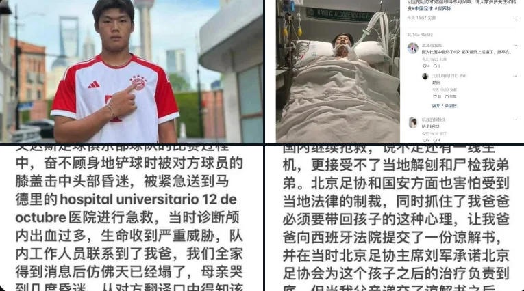 唐人日报2月12日讯:近日,博主“大琪 呀哈比比”发文称,18岁的弟弟、国安U21主力小将郭嘉璇在北京足协组织的西班牙集训期间遭遇重伤,最终脑死亡。博主透露,按照西班牙法律程序,应该由当地法院追究主办方责任,但足协却假意承诺会全程负责,诱导其父签署谅解书,放弃追究责任。