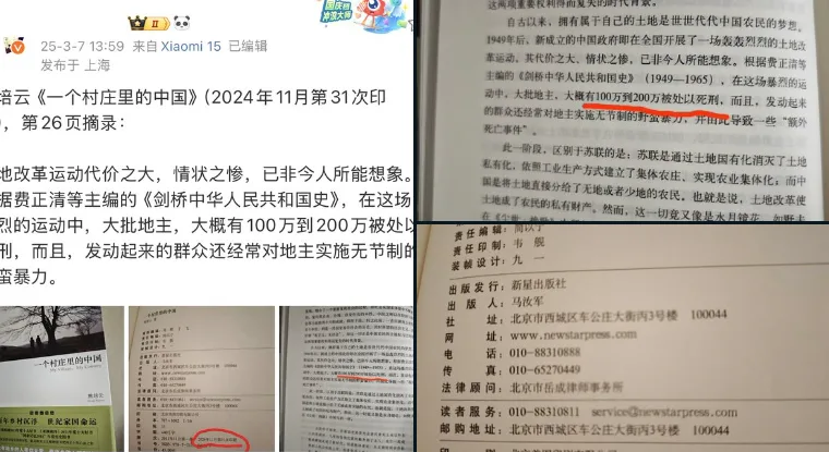 唐人日报3月8日讯:近日,《一个村庄里的中国》一书中,第26页的内容提供了对历史上土地改革运动深刻而惨痛的回顾。根据费正清等人主编的《剑桥中华人民共和国史》,该运动是中国历史上一段极为动荡的时期,涉及广泛而深刻的社会变革。