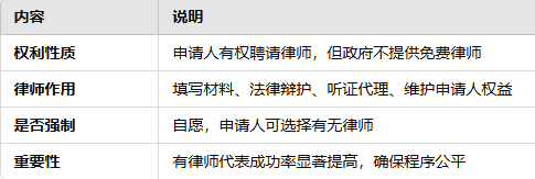 在庇护申请中,“获得律师辩护权”指的是申请人有权利聘请律师来代表自己,帮助他们在整个庇护申请过程中进行法律辩护和代理。具体包括以下几个核心要点: