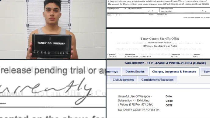 唐人日报4月8日讯:拉扎罗·亚伯拉罕·皮涅达-维洛里亚(Lazaro Abraham Pineda-Villoria),一名非法入境美国仅数月的男子,近日在密苏里州被控“非法使用武器——展示”罪名,并因涉嫌帮派背景引起执法部门高度关注。