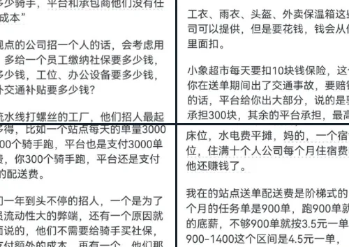 骑手普遍以“外包”或“众包”身份存在,平台无需为其缴纳社保、公积金,也无需承担工伤、年假等法定义务,大幅压缩了用工成本。