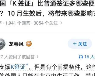 唐人日报10月10日讯:近日,关于“K签证”政策的讨论在社交媒体上持续发酵。大量网友在微博、知乎、小红书等平台发声,表达了对该政策的质疑与不满。有人直言:“我不是反对K签证,但有个前提——这些来华的外国人只能在北京生活工作,禁止到别的城市乱逛、不可出京。”这条评论迅速登上热搜,引发网友广泛共鸣。