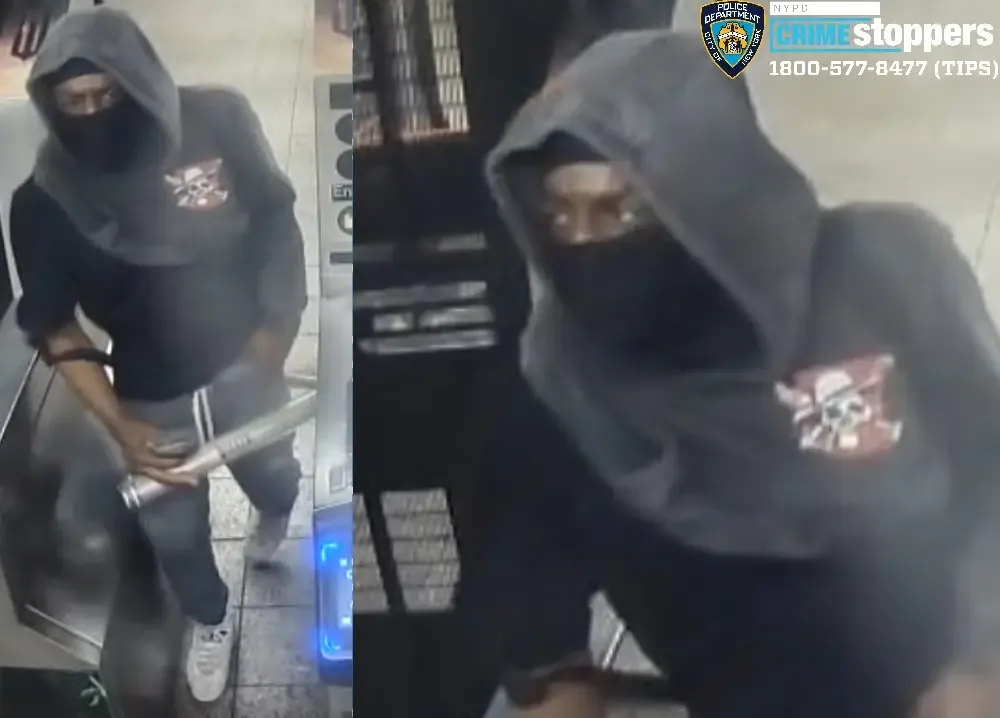 10月10日凌晨5点左右,一名蒙面嫌犯和他的“娃娃脸”同伙在曼哈顿Bleecker Street地铁站抢劫了一名60岁男子,殴打其头部并抢走了65美元现金。