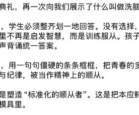教育学者指出,真正的教育应当培养的是具有思考力、创造力和独立精神的公民,而不是一味的口号制造者和被动的执行者。过度强调政治忠诚和集体一致性,会让学生逐渐习惯于“标准答案”,最终削弱他们面对复杂社会问题时的判断力和创新力。