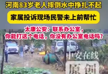 太康暴雨致8旬老人跌倒水中挣扎 民警旁观未援引发争议