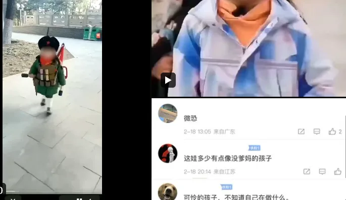 唐人日报2月19日讯:近日,一段视频引发关注,女童在家长指引下,身着军大袄背上玩具“炸药包”,并将玩具手榴弹丢进坑里。视频中,其他小孩也高喊“别说台湾,连月亮都是中国的”,言辞显得充满民族情感。