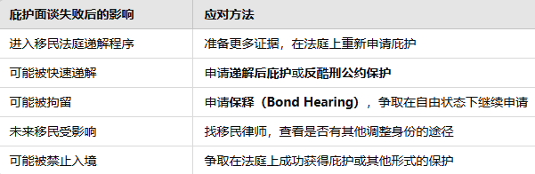 如果你是非法入境者(如从美墨边境偷渡入境,或逾期居留后申请庇护),庇护面谈失败可能对你产生额外的影响: