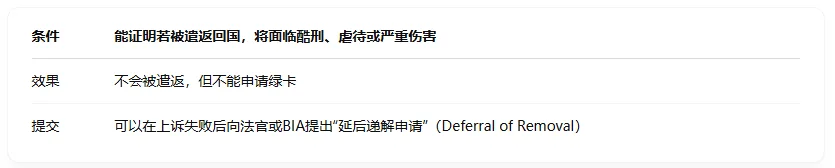 即使庇护失败,也可能申请 《禁止酷刑公约》(CAT)保护: