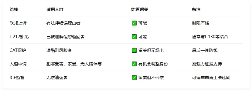 如果递解令的上诉失败或动议重开失败,这代表你已进入非常关键且高风险的阶段,但你仍有几个重要选择和策略可以考虑,以争取留在美国或保护自己不被遣返。