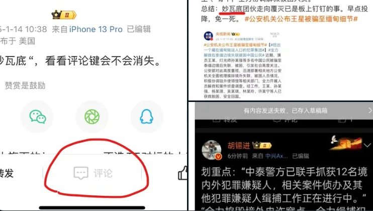 唐人日报1月19日讯:近日,多位微博博主反映,如果帖子中含有“妙瓦底”三字,或与缅甸电诈相关,帖子往往会被禁止评论。然而,胡锡进昨日发布的微博中同样包含“妙瓦底”三字,却未受到评论禁言处理。一些博主评论称:“老胡果然有优待”,暗示其特殊待遇。