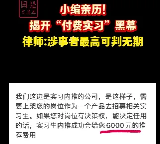 此次曝光的案例中,内推公司直接提出“钱货两讫”,不仅凸显了手法的赤裸和低劣,更折射出实习招聘市场监管的空白。对于不少高校学生而言,实习不仅是走向职场的第一步,更是日后求职的重要背书。一些年轻人为了进入心仪单位,不惜支付高额费用,却不知自己早已掉进被收割的陷阱。最终,学生花了钱,实习经历却未必真实可靠;企业收了人,却可能牺牲了招聘的公正性。