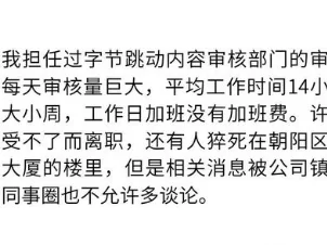 字节跳动内容审核员自曝血汗工作制:14小时轮班无加班费,同事猝死事件遭封锁