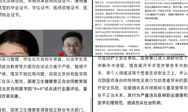 学术造假+权色交易实锤!协和4+4项目暴雷:董袭莹学历作废 导师肖飞终身禁业