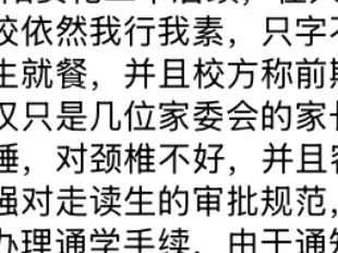 不少家长指出,学校的公开回应只是转移焦点,避重就轻。所谓“食堂条件提升,足以满足学生就餐”,完全回避了强制学生在校消费的核心矛盾。更令人愤慨的是,校方竟将“部分家委会成员的赞同”包装为“家长普遍支持”,而事实上,反对声音在家长群体中占据绝对多数。正如一位家长所说:“支持的只是个别被代表的声音,大多数家长根本没同意过。”