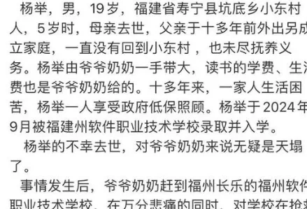 据知情人透露,去世学生名叫杨举,事发当天早晨在教室内突感身体不适,出现意识模糊症状。同学们立即将其送往校内医务室处理,但学校并未第一时间拨打120急救电话,而是选择用私家车将其送往医院。不幸的是,杨举送医时已无生命体征,抢救无效死亡。