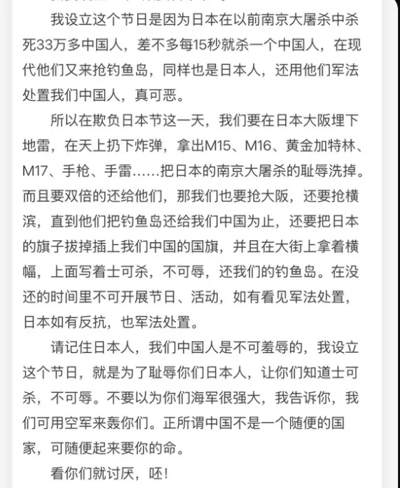 唐人日报2月20日讯:近日,一名小学生在作文中提议设立“欺负日本节”,理由是“日本在南京大屠杀中杀了33万多中国人,现代又来抢钓鱼岛”。该作文内容引发广泛关注,网友对此表示担忧,认为这种言论可能激发民族仇恨情绪。