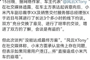 据悉,车主代表已与小米集团副总裁展开沟通谈判,但协商未果。小米方面明确表示,“若允许退车,将对小米汽车造成毁灭性打击”,拒绝了集体退车的请求。