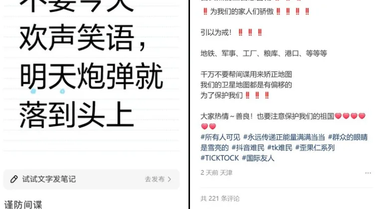 唐人日报1月30日讯:近日,部分小红书网友发文提醒大众不要上传中国街道、高铁、工厂等设施的照片,称这些信息可能被外国间谍利用进行间谍活动。部分帖子表示,上传这些照片可能导致“修正地图”,进而泄露敏感信息。“我们卫星地图的偏移是为了保护国家安全”,有网友强调。另一些帖子警告称,“谨防间谍,今天的欢声笑语可能会引来明日的炮弹”。
