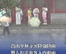 少林寺暴雨拒游客入殿避雨!老人小孩挤1米屋檐下,网友:慈悲何在?