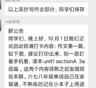 据学生反映,该校在放假前几天通过班主任群发布通知,要求所有初三学生每天早上七点前上线打卡、全天按课表听线上课程,并需在镜头前保持坐姿端正。部分家长称,学校还规定“无故缺课一次扣班级分,累计两次记入期末评优档案”。