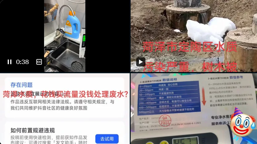 唐人日报1月26日讯:近日,山东菏泽多位民众反映,自来水质量严重污染,水质浑浊且带有异味,经仪器检测后显示数值超标。居民称自来水“味道咸涩、假滑”,有条件的居民购买净水器解决问题,而无条件的只能继续饮用污染水。多次向有关部门投诉未果,部分居民将问题上传至网络却被平台删除。