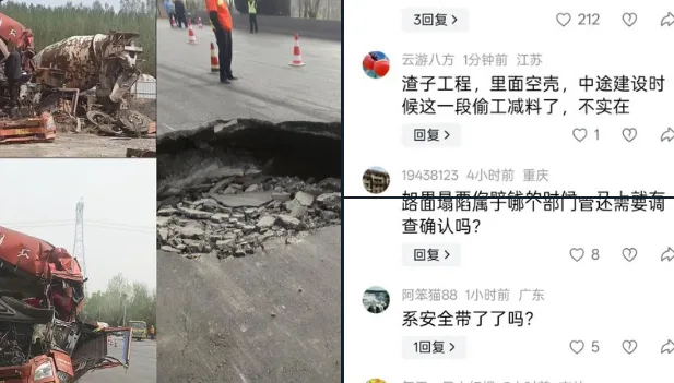 据目击者称,事发时路段并无明显塌方警示标识,四辆车接连陷入事故,现场一度混乱。事故引发广泛讨论,有网友讽刺道:“如果政府要你赔钱的时候,马上就有人联系你了。”