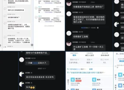 在聊天记录中,杨文军公然嘲笑员工是“奴隶”,称“三条腿的蛤蟆不好找,四条腿的工人大把”,并表示“给大学生1000块包吃住都不错了”。更有甚者,他声称自己“打发叫花子的钱都比给员工的多”,毫无顾忌地贬低劳动者尊严。