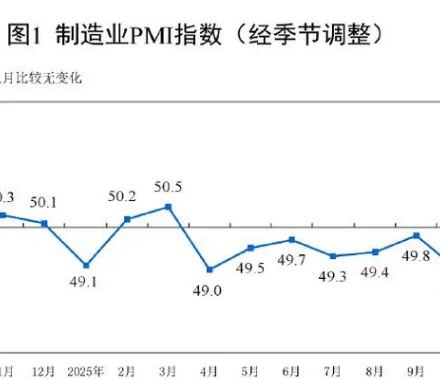 唐人日报11月3日讯:中国国家统计局发布的最新数据显示,2025年10月制造业采购经理指数(PMI)录得49,明显低于市场预期的49.6,也较9月的49.8再度下滑0.8个百分点。这意味着中国制造业活动已连续七个月处于收缩区间,再次释放出经济复苏乏力的信号。