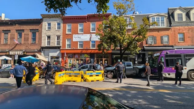 唐人日报9月29日讯:巴尔的摩联邦山发生一起严重交通事故。一辆Charm City Circulator城市公交车在S. Charles街1100街区附近与一辆私家车发生猛烈碰撞,事故导致数辆停放车辆被波及,其中一辆被撞飞至户外餐饮区,现场一名正在用餐的顾客受伤,所幸伤势无大碍。
