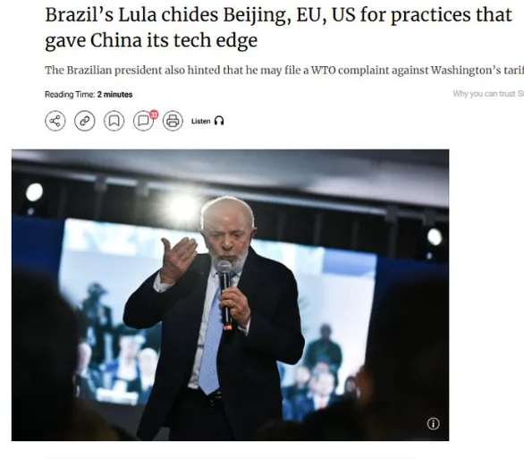 巴西总统卢拉指责中国技术崛起“抄袭”