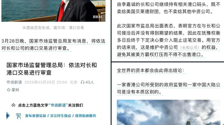 唐人日报3月30日讯:近日,国家市场监管总局正式宣布,将对香港长和公司计划中的港口交易进行法律审查,此举可能标志着交易的暂停或终止。这一消息一经发布,便引发了广泛关注和激烈讨论。