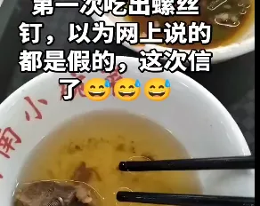 面对舆论压力,涉事快餐店老板在接受媒体采访时道歉,声称事件“属厨房工人操作疏忽”,并已开除相关员工。然而,消费者并不买账。“螺丝钉能嵌进骨头里?是厨师疏忽还是供应链造假?”不少网友怀疑汤料使用了不明来源的工业骨头或机器加工残料。