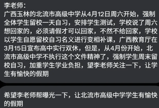 广西一高中被曝强制周六补课!学生举报后,教育局竟称“不属实”