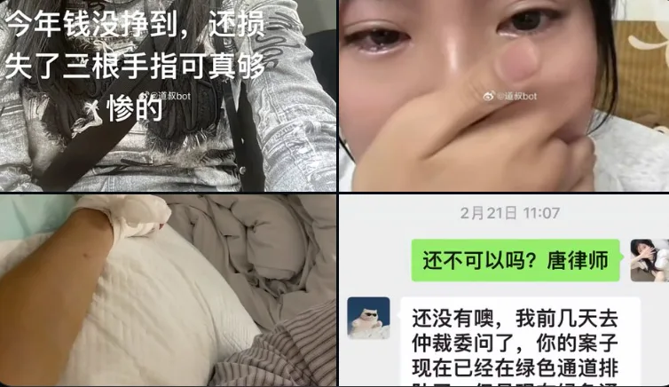唐人日报3月9日讯:近日,广西一名年轻女工在社交媒体上透露,她在通过亲戚介绍到一家工厂工作不久后遭遇严重工伤,三根手指被机器压断,且医生表示无法再生。尽管尝试通过法律途径寻求公正和赔偿,但她的诉讼请求迟迟未能立案,也没有得到任何形式的赔偿。
