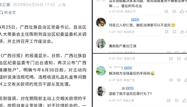 广西推“清廉账户”鼓励自首从宽,网民拷问:违规吃喝交钱就能免责?