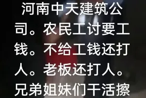 同一天,河南中天建筑公司也爆出更为恶劣的欠薪事件——不仅拖欠农民工工资,甚至在工人讨薪过程中,相关负责人竟对工人施以暴力。一段流传视频显示,一名工人在言语交涉过程中遭到殴打,引发网友强烈愤怒。