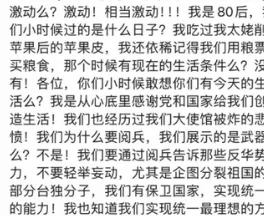 他在文中写道:“我不理解,为什么一个普通的中国人表达爱国就会被讥笑?我热爱我的祖国,也希望更多的孩子能通过教育改变命运。这有什么错?”他反问:“网络监管部门为何不去制止那些辱骂爱国人士的言论?为什么让恶意攻击大行其道?”