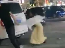 现场视频显示,男子情绪极度激动,不顾女子的惨叫与反抗,当街多次出手击打,并用力踹向女子身体。女子被打得踉跄倒地,仍被揪住头发和衣服拖行,最终被塞进一辆白色面包车的后排座位。整个过程持续数十秒,周围有路人惊呼,但无人上前阻止,现场气氛压抑而恐惧。