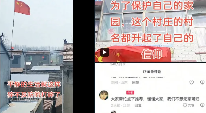 为了表达他们的不满和抗议意愿,付庄村的居民们采取了一种极为象征性的方式:他们在自家房屋上升起了国旗,用这种方式来保卫他们的家园和权利。这种行为不仅是对拆迁补偿不公的反抗,也是村民们寻求关注和支持的一种表达。